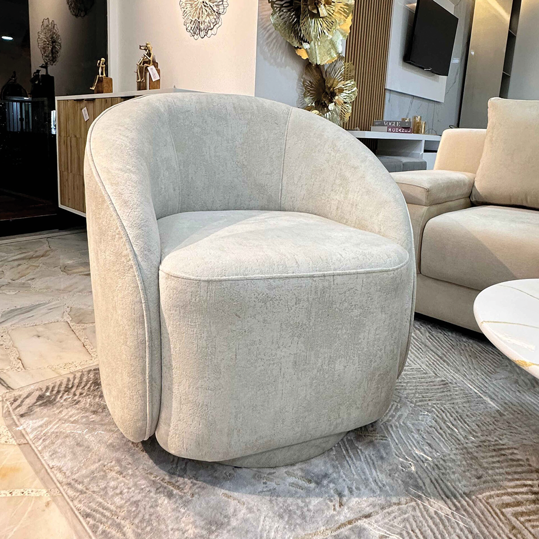 Dale a tu espacio un toque de elegancia y comodidad con nuestros sillones giratorios. Su diseño curvo y envolvente, tapizado en tela de alta calidad en tono neutro, crea un ambiente sofisticado y acogedor. Ideal para salas, recibidores o espacios de descanso, combina perfectamente con diferentes estilos de decoración mientras ofrece una experiencia de descanso.